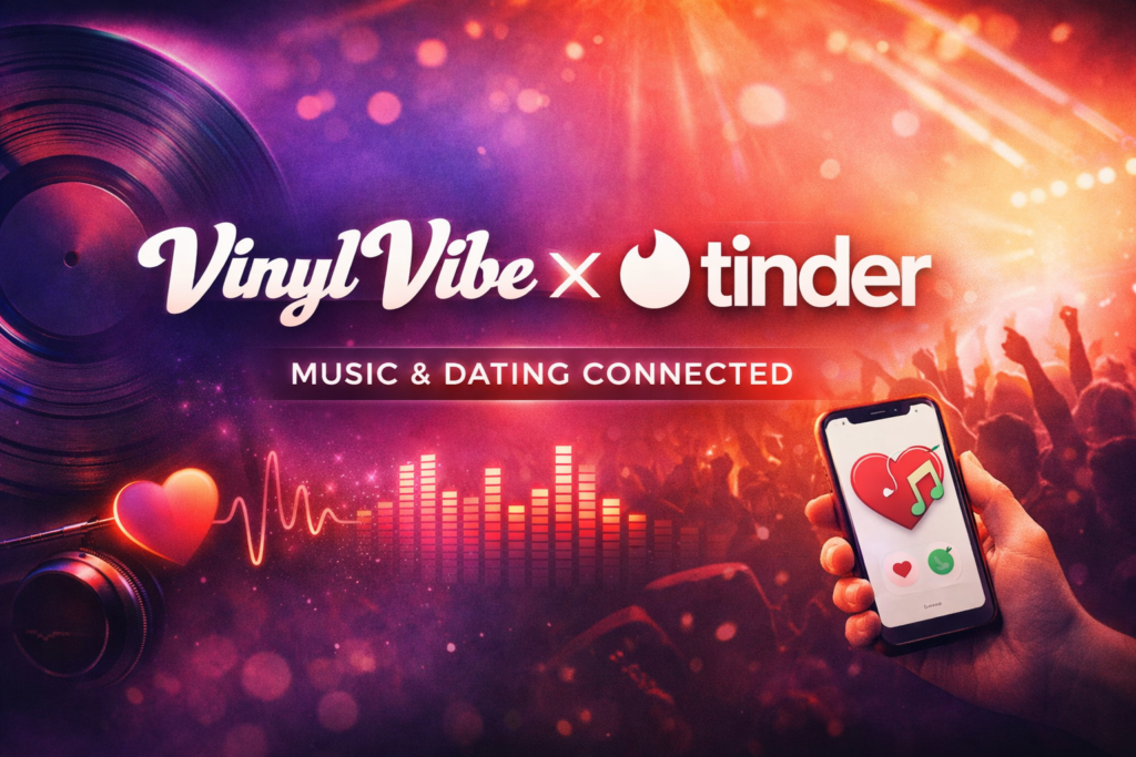 Vinyl Vibe, the rising global music media platform focused on discovery, culture, and live experiences, is proud to announce a new strategic partnership with Tinder, the world’s most popular dating app. The Vinyl Vibe, Tinder partnership will explore the powerful intersection between music, identity, and connection in the digital age.