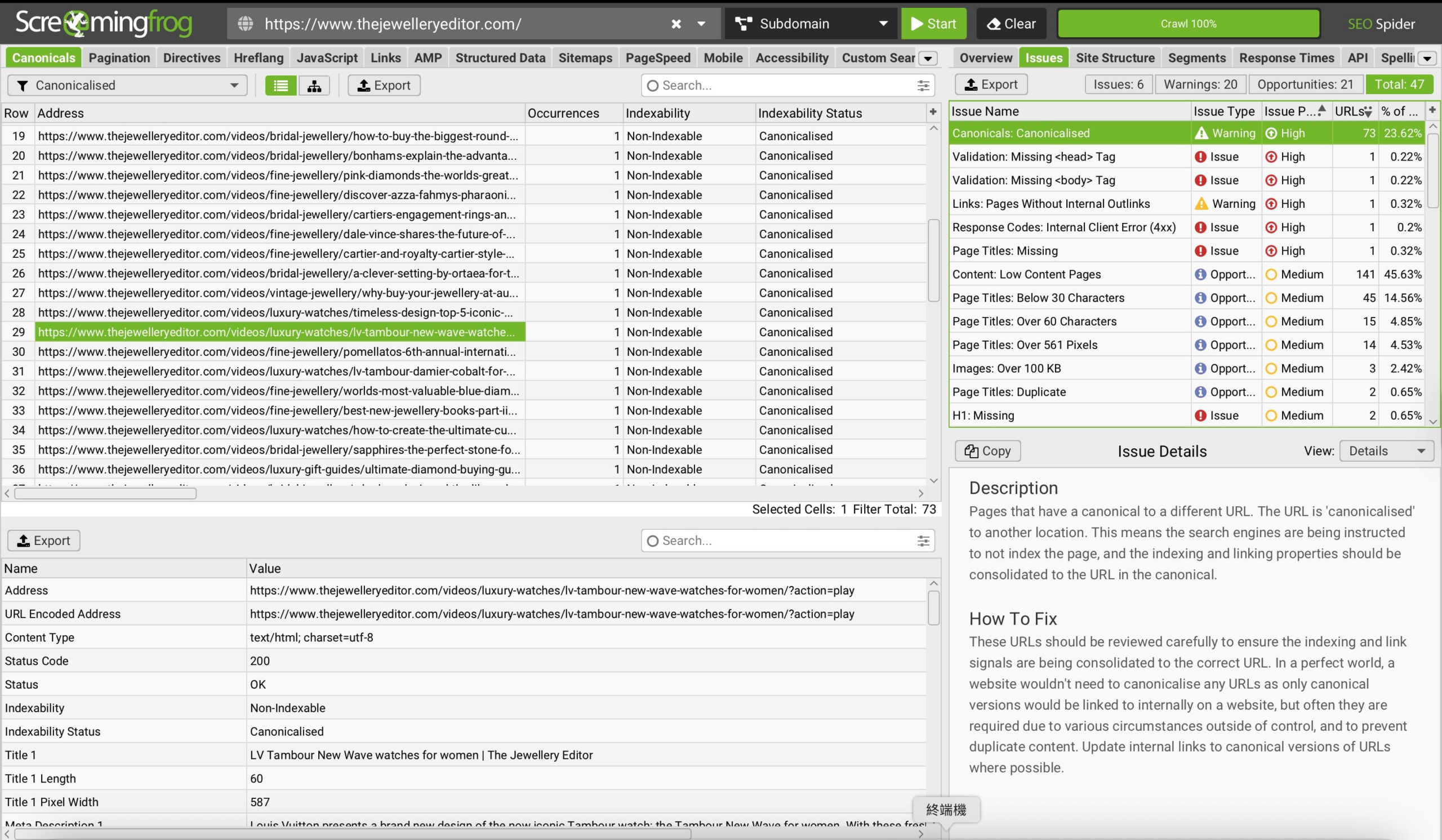 In this article, explore our “The Jewelry Editor” case-study. Firstly, you will find a technical audit that we conducted, with information regarding the site health, errors and warnings. Then, you will discover the evaluation of keywords and the SERP Position of this competitor of ours. Next in the “The Jewelry Editor” case-study, you will learn more about their organic traffic and click-through rate. In the fourth part, you will discover an analysis of their backlinks : the number, the toxicity, the domain authority, and the trust score. Finally, you will discover our Screaming Frog analysis.
