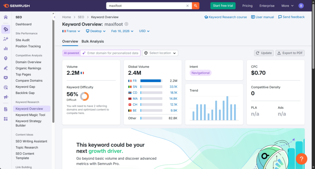 1. Keyword Analysis (Keyword: “maxifoot”)