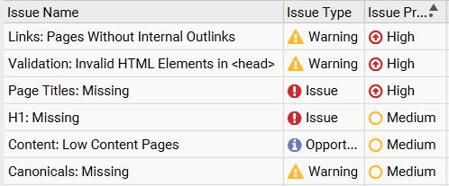 - Missing or empty page titles, reducing SERP visibility and weakening core ranking signals.